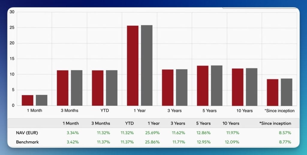 Su rentabilidad es igualmente de alrededor del 10% en los últimos 5 años, lo que lo convierte en también en uno de los mejores fondos MSCI World en los que invertir.