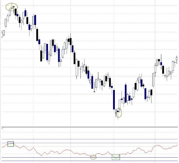 Este indicador alerta al inversor si el mercado entra en niveles de sobrecompra o de sobreventa, algo clave ya que generalmente es en esos momentos cuando podemos asistir a un giro del mercado, de alcista a bajista o de bajista a alcista.