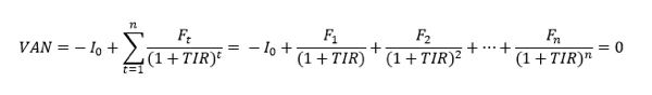 La formula TIR es algo compleja, pero para que te hagas una idea, la formula en concreto sería la siguiente: